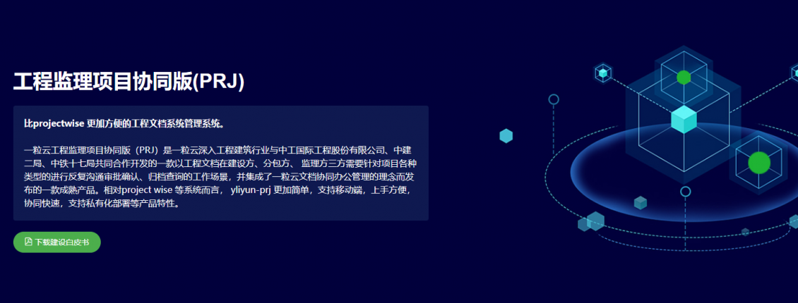 一粒云工程监理项目协同版(PRJ)是一粒云深入工程建筑行业与中工国际工程股份有限公司、中建二局、中铁十七局共同合作开发的一款以工程文档在建设方、分包方、 监理方三方需要针对项目各种类型的进行反复沟通审批确认、归档查询的工作场景,并集成了一粒云文档协同办公管理的理念而发布的一款成熟产品。相对project wise 等系统而言, yliyun-prj 更加简单,支持移动端,上手方便,协同快速,支持私有化部署等产品特性。