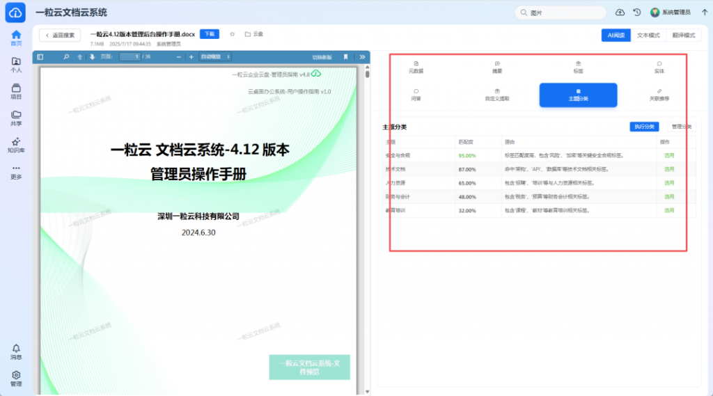 - 发布8个AI辅助阅读与数据提取功能,并解决超长文本处理问题分别为: 元数据,摘要,标签,实体,内容问答,自定义抽取数据,文档分类,关联推荐