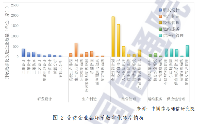 将企业生产经营全流程分为研发设计、生产制造、经营管理、运维服务、供应链管理5个一级环节,
