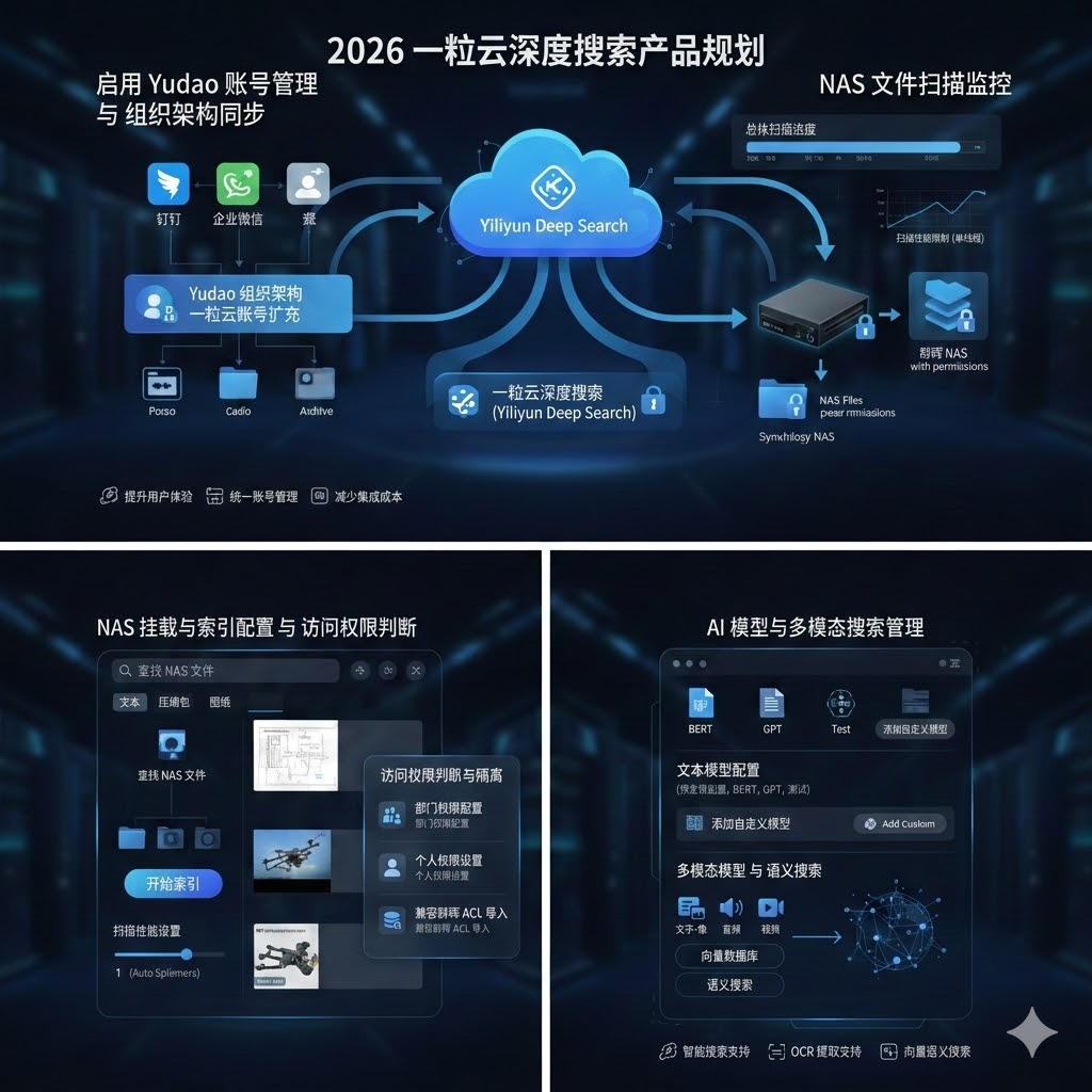 一粒云深度搜索产品基于NAS的独立搜索解决方案,旨在帮助集成商与最终客户通过简单易用的方式实现对存储在网络附加存储设备(NAS)中的文件进行高效、智能的搜索管理。通过将传统的文件管理与先进的AI搜索技术相结合,我们不仅提升了用户在文本和多模态数据搜索方面的效率,还能提供强大的权限管理和数据保护功能。